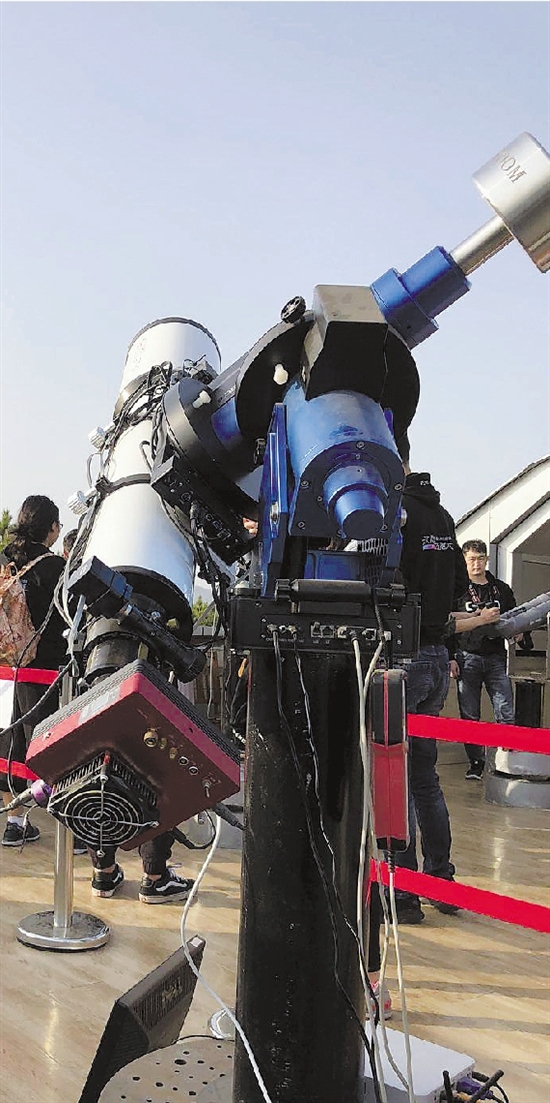 小图:兴隆观测基地的天文望远镜供访客进行观测。